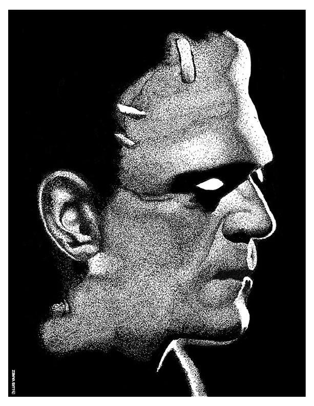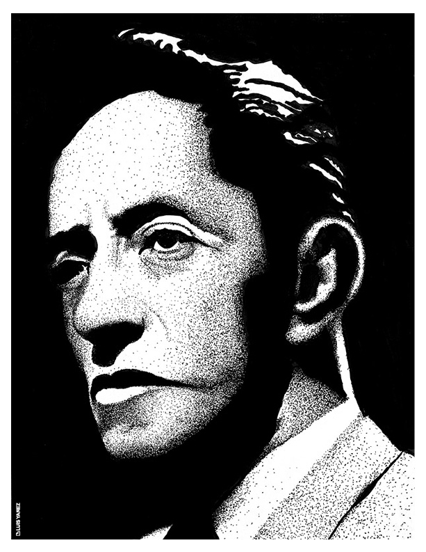 Point of View, a series of celebrity portraits made with black India ink on opaline cardboard using the pointillism technique.