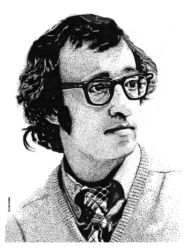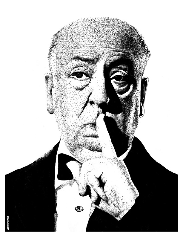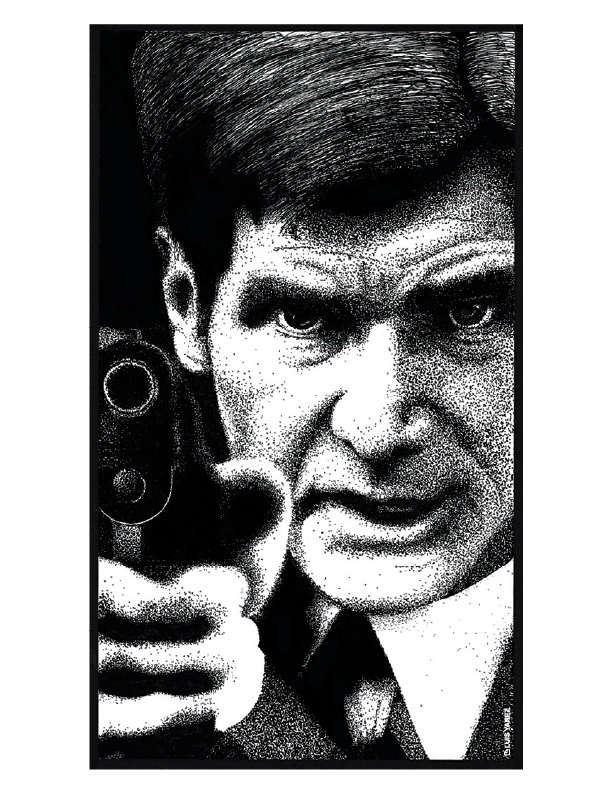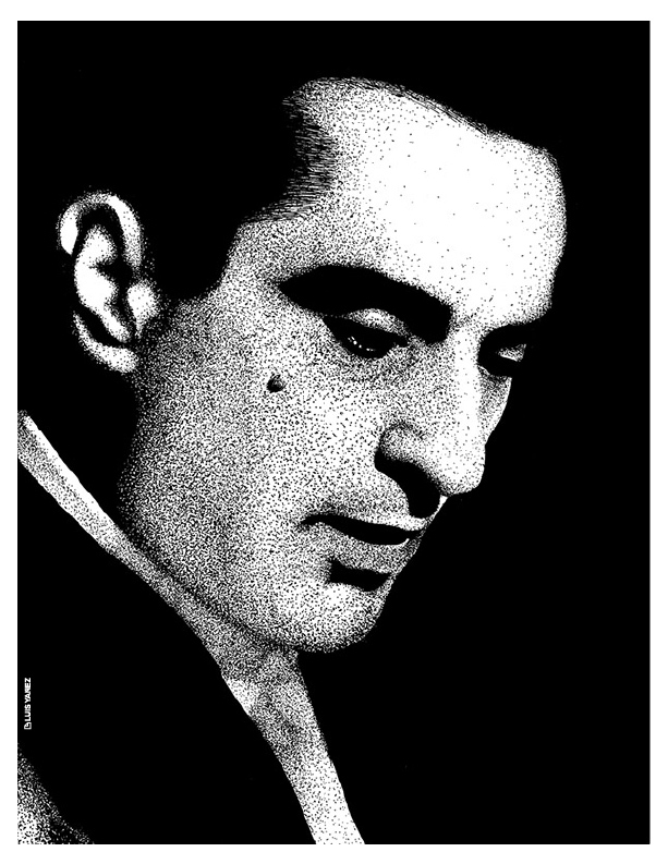 Point of View, a series of celebrity portraits made with black India ink on opaline cardboard using the pointillism technique.